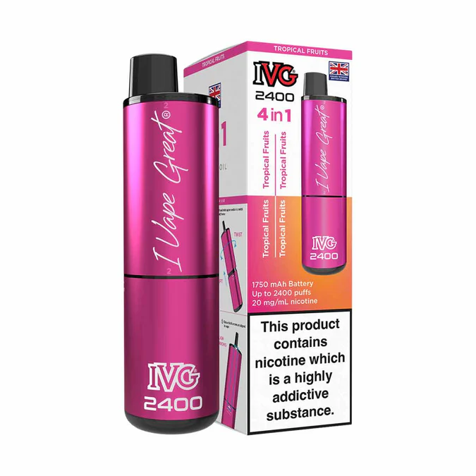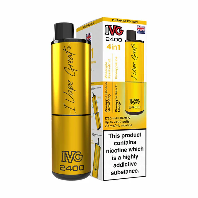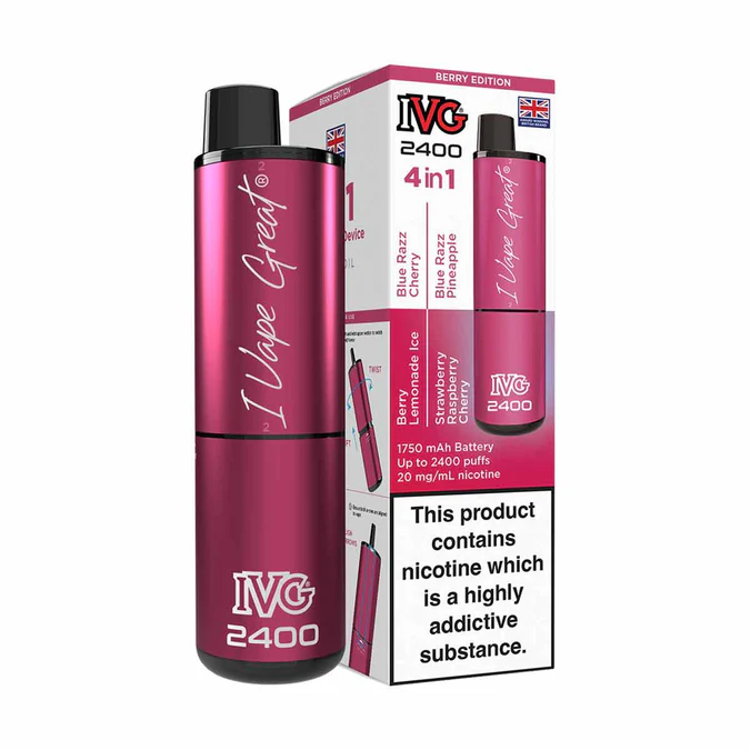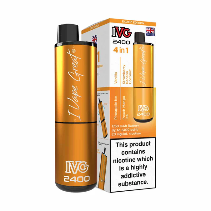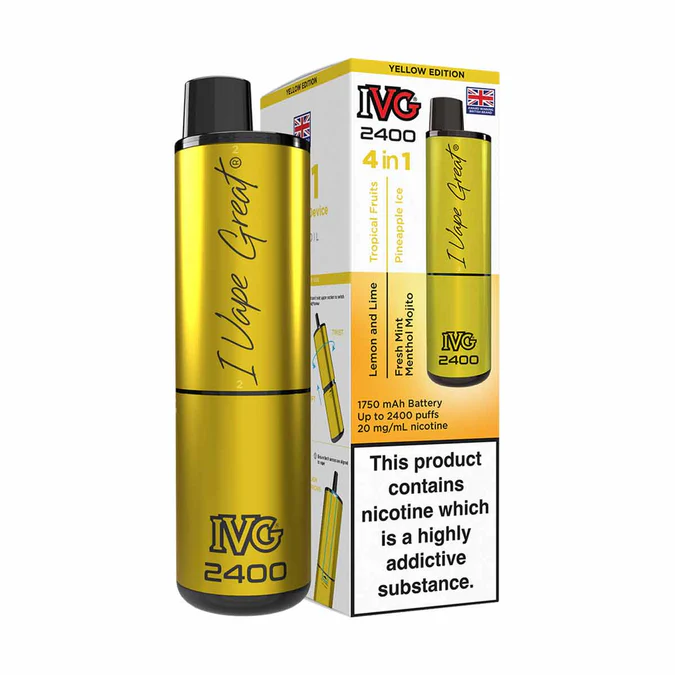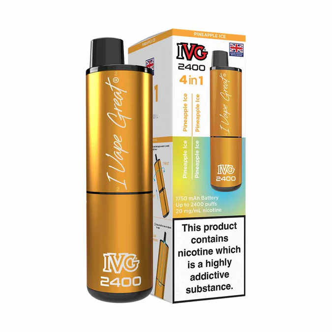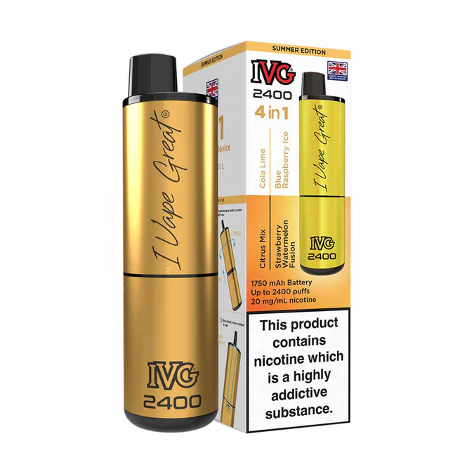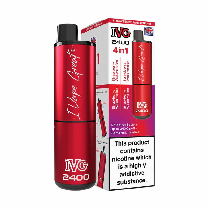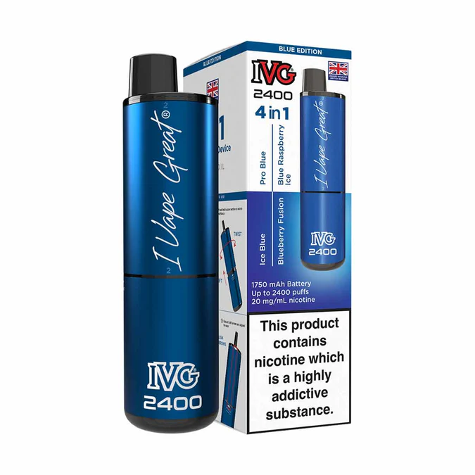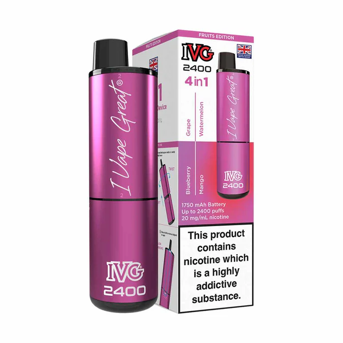 Overall, the IVG Air 2400 puffs 4 in 1 is aimed at users seeking a straightforward vaping solution that provides high puff counts and a variety of flavors, all in a compact and user-friendly package.