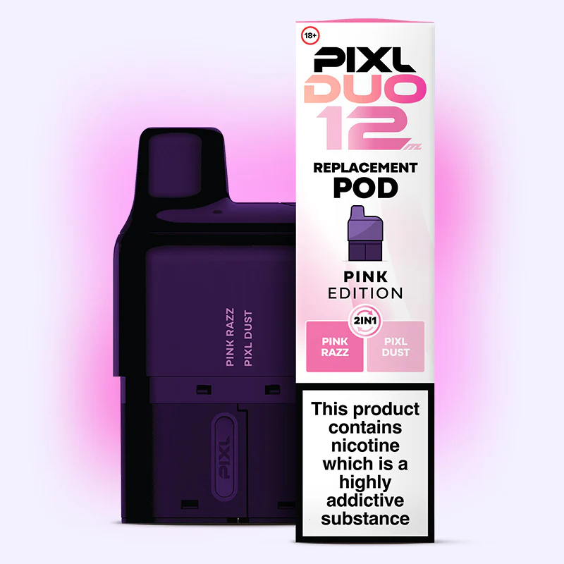 PIXL Duo 12 Replacement Pods are crafted specifically for the PIXL Duo 12 Pod Kit, offering a smooth and flavorful vaping experience. Each pack contains two 1ml prefilled pods and two 5ml refill bottles, totaling 12ml of 20mg nicotine salt e-liquid. This supply can deliver up to 6,000 puffs depending on usage.